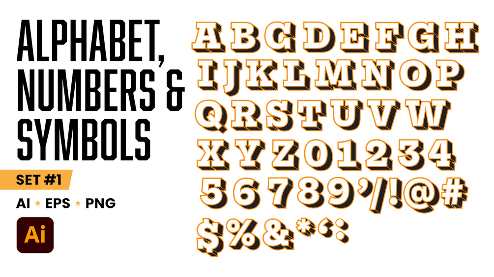 - 3 Sets of alphabets, symbols and numbers (editable colors)